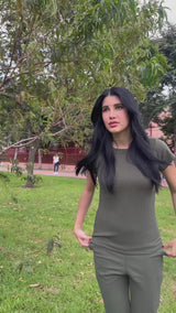Nuestro conjunto bota recta himalaya esta elaborado en RIB de alta calidad con un peso de 265 gr x mt2, compuesta por poliéster 97% y Elastomero 3% , es una tela acanalada, fresca y muy cómoda.